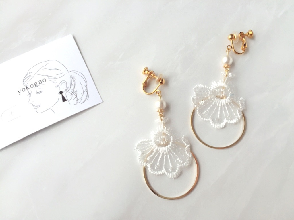 前面のレースと、後ろのゴールドフープが別々に揺れるところがポイントです♪