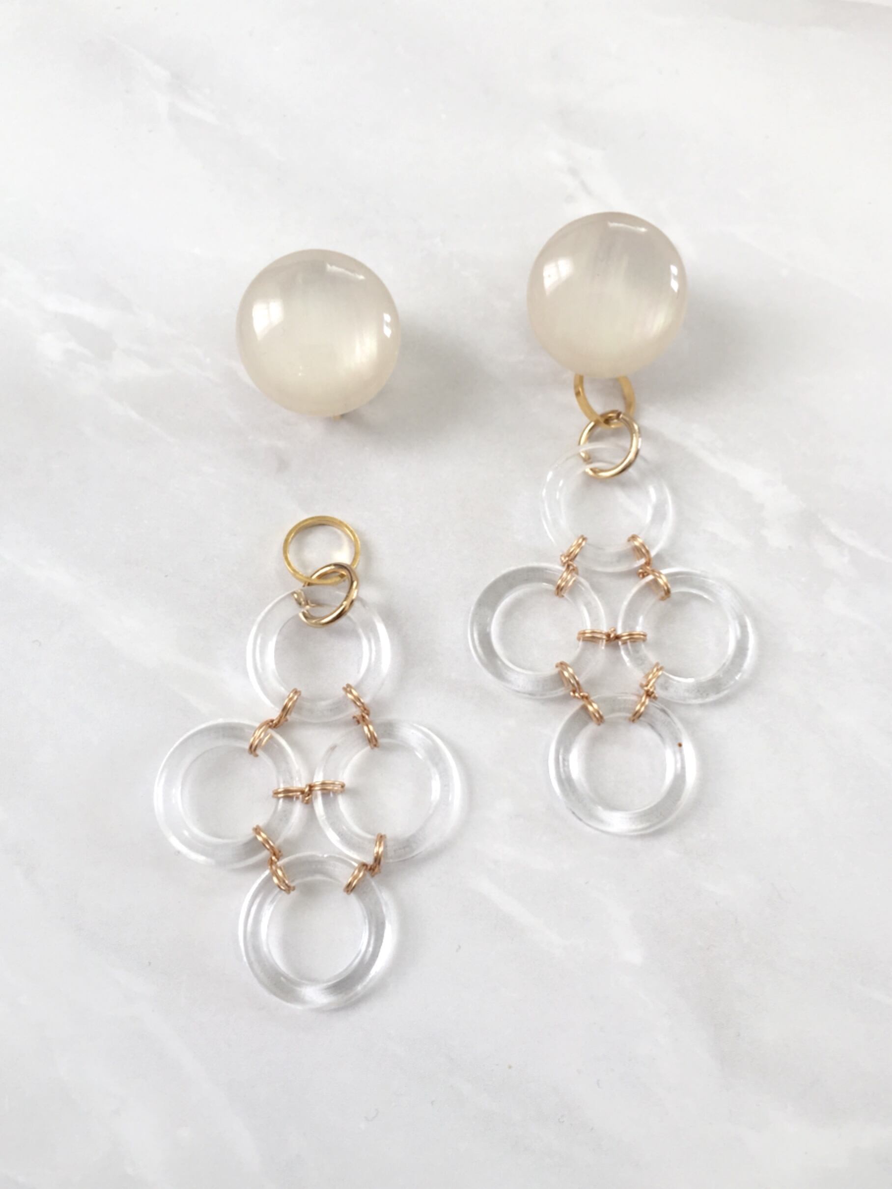 四ツ葉のクローバーをイメージした4つのクリアリングは、ワイヤーで一つ一つ繋げています。